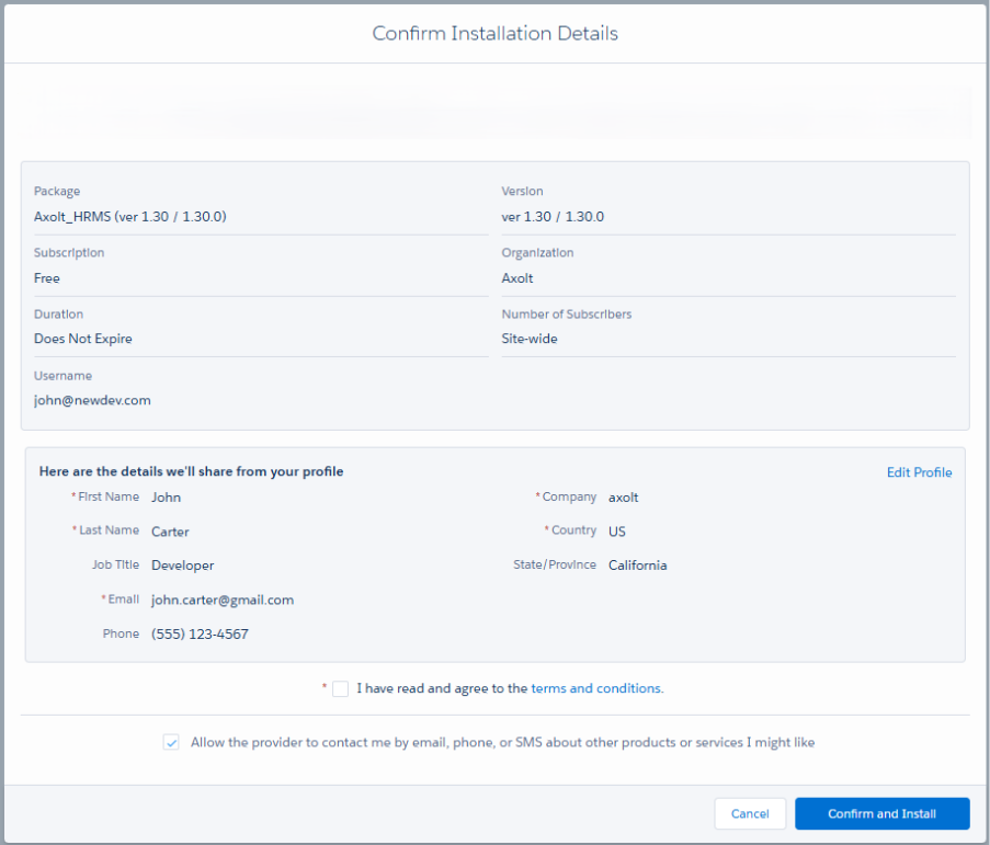- You will then be taken to a confirmation screen. Review the details, select the checkboxes below, and click Confirm and Install.