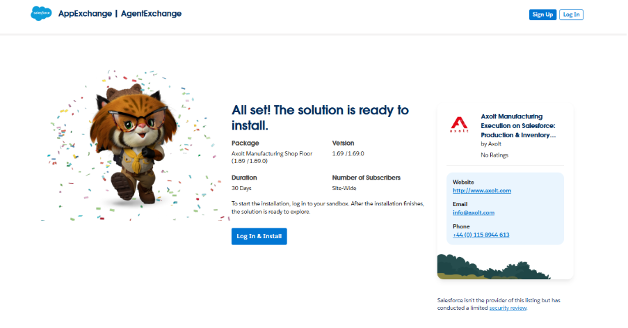 • Navigate to the AppExchange and search for Axolt Manufacturing Execution on Salesforce: Production & Inventory Management.