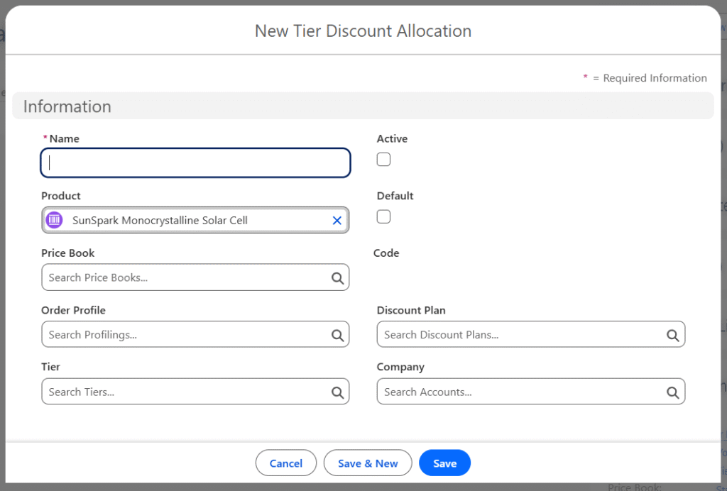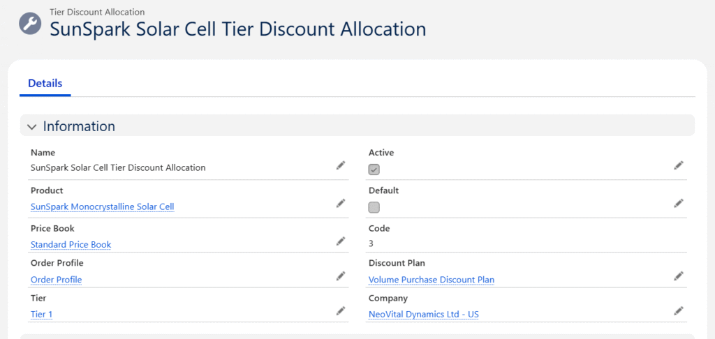 - Save the record to create the Tier Discount Allocation for the product.
