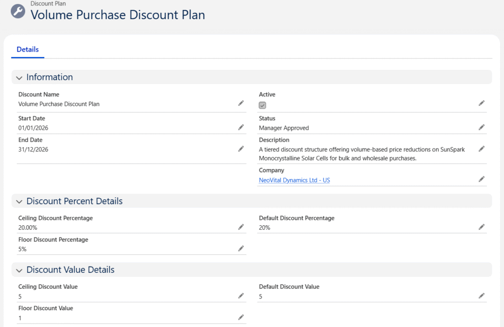 - Save the record to create the Discount Plan.