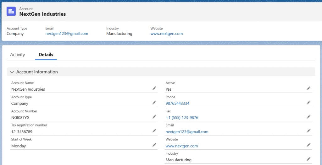 - Ensure the Active checkbox is selected, and the Account Type is set to Company.