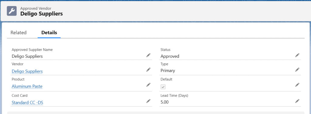 b. Approved Vendor – Approved Vendors can be directly linked to specific Products (or Product records) in the system.