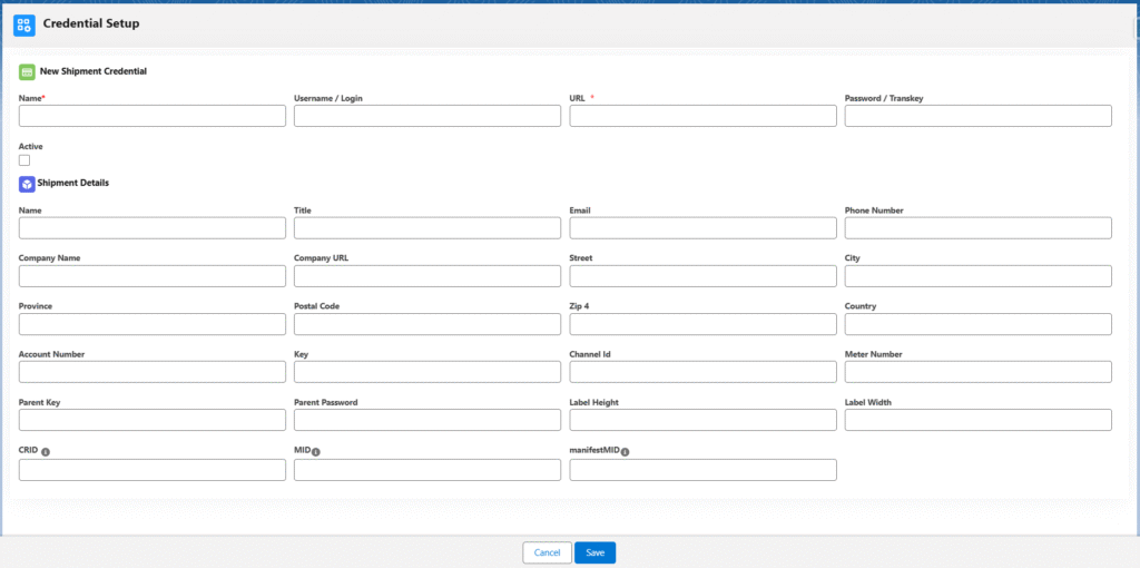 - In the Shipper Details section, enter the Name, Title, Email, Phone Number, Company Name, Company URL, Street, City, Province, Postal Code, Country, Account Number, Key, Meter Number, Parent Key, Parent Password, and any other optional details if required, then click Save.