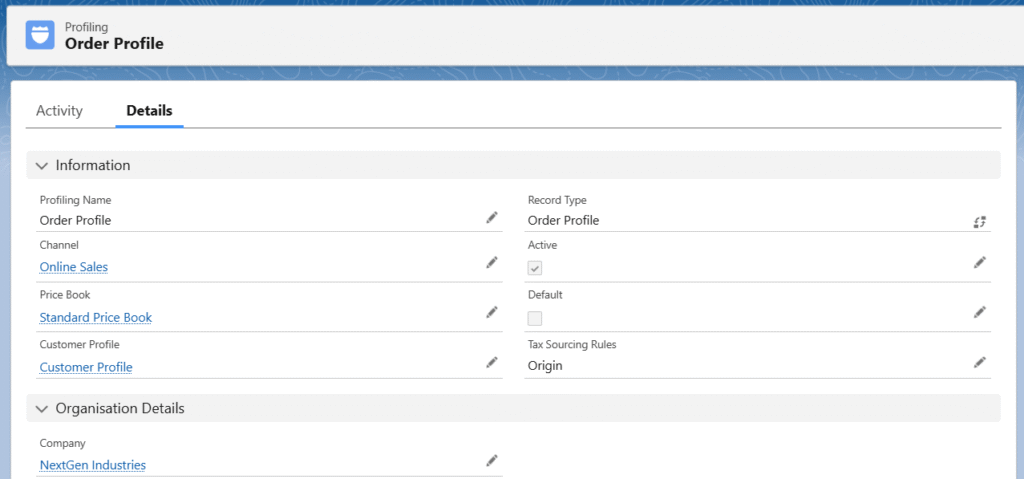 g. Profiling – Profiles control tax rules, pricing strategies, and product visibility for customers.